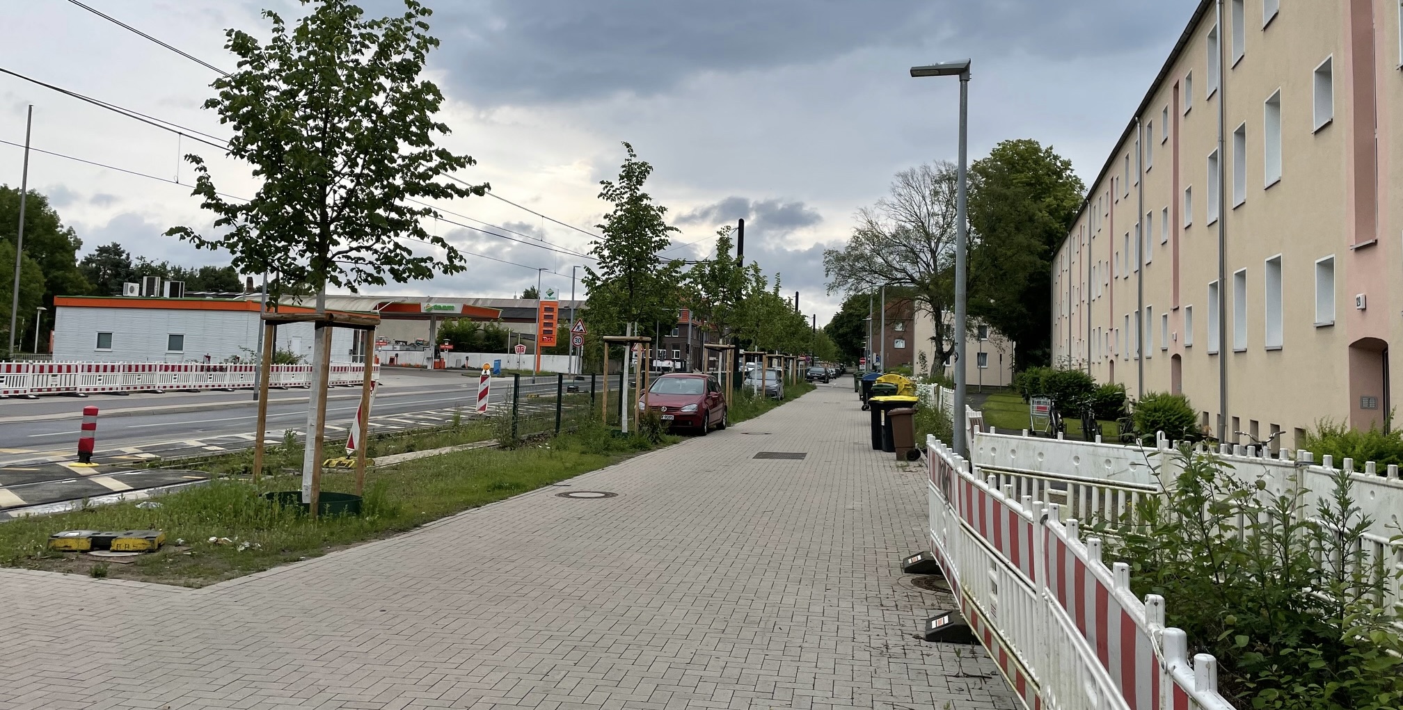 Gelegentlich wird ein bisschen gewerkelt, mehr passiert nicht! Man fragt sich, wie lang soll dies so bleiben? Der Rad- und Fussverkehr wird sich völlig selbst überlassen! Überall stehen oder liegen Schrankenzäune mit den dazugehörigen Fußplatten herum. Wie geht die Üstra mit Ihrem Eigentum um? Kosten die kein Geld?